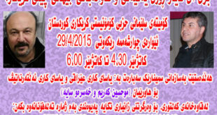 ئێواره ى ئه مرۆ كاتژمێر ٥،٣٠ له قاوه خانه ى كه لتورى بۆ رێزگرتن له خه بات و ژيانى هاورێيان شاپور عبدالقادر و قابيل عادل كۆبونه وه يه ك له لايه ن كۆميته ى سلێمانى حيزبى كۆمۆنيستى كرێكاريى كوردستانه وه ،سازكرا.لەم کۆبونەویەدا ژماره يه كى به رچاو له خه ڵكانى …