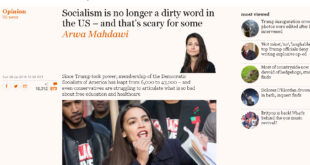 سالار حمەسەعید سەرنجێک دەربارەی وتارێک کەلە رۆژنامەی گاردیان لەم رۆژانەدا نووسرابوو سەبارەت بە سۆسیالیزم. رۆژنامەکە دەڵێ کە تا ئێستا سۆسیالیزم لە ڕیزی وشە و زاراوە ناشیرین و قێزەون و پەست و خراپەکان دادەنرێ لە ئەمریکا. بەڵام وەک هەواڵێکی گرنگ و سەیر ڕایدەگەیەنێ کە چیتر سۆسیالیزم وشەیەکی پەست و قێزەون نیە. …
