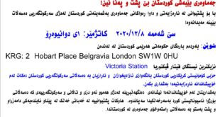لەندەن: بانگەوازی خۆپیشاندان جەماوەری بێبەشی کوردستان بێ پشت و پەنا نین! با بۆ پشتیوانی لە ناڕەزایەتی و داوا ڕەواکانی جەماوەری بەشمەینەتی کوردستان لەدژی سەرکوتگەریی دەسەڵات بێینە مەیدانەوە! سێ شەممە ٢٠٢٠/١٢/٨ کاتژمێر: ١ی دوانیوەڕۆ شوێن: بەردەم بارەگای حکومەتی هەرێمی کوردستان لە لەندەن KRG: 2 Hobart Place Belgravia London SW1W 0HU نزیکترین …