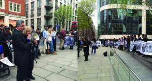 رۆژی ١٣ نیسان لە درێژەی کەمپەینی فیدراسیۆنی سەراسەری پەنابەرانی عێراقی دژ بەڕاگرتنی پەنابەران لە گرتوخانەکانی بەریتانیا وپلانی ناردنەوەیان بۆ بەغدا بەپێی رێکەوتنێکی نێوان حکومەتی عێراقی وحکومەتی بەریتانیا، لەبەردەم وەزارەتی ناوخۆی بەریتانیا خۆپیشاندانێکی ناڕەزایەتی ڕیکخرا. ئەم خۆپێشاندانە ناڕەزایەتیە بەبەشداری جین لامبێرت ئەندام پەرلەمانی ئەوروپا لە لیستی حزبی سەوز، ونۆینەرانی یەکێتی کرێکاریی PCS و ڕێکخراوی AWL و بەرەی …